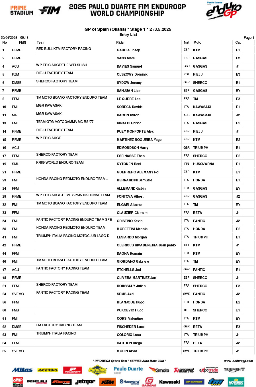 La segunda ronda en España, en terreno claramente favorable para el vigente campeón García, ofrecerá unas condiciones muy distintas a las de Portugal. Además, el GP de España también puntúa para el Campeonato Nacional de Enduro, lo que significa muchos más pilotos en las especiales durante los dos días de competición, un factor que seguramente influirá en el desarrollo de la carrera.
