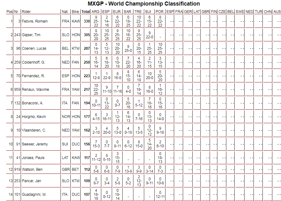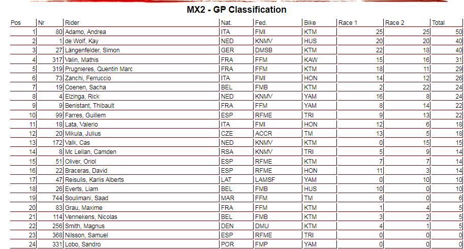 Una nota al pie sobre el hecho de que los dos wild cards portugueses, Luís Outeiro en MXGP y Sandro Lobo en MX2, no lograron pasar de las carreras clasificatorias.
